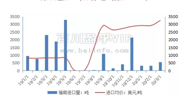 2020年3月混合碳酸稀土進(jìn)口總量是586噸,環(huán)比上漲。其中緬甸進(jìn)口量為565噸,環(huán)比上漲81%。進(jìn)口均價(jià)為3241美元/噸,環(huán)比上漲11%。...