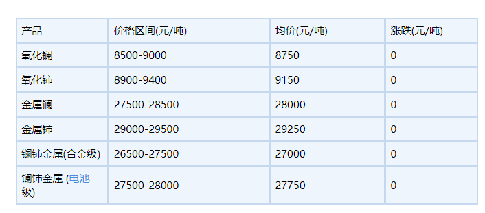 12月6日國內(nèi)鑭鈰系稀土市場價格走勢穩(wěn)定,氧化鑭、鑭鈰系稀土價格處于低位水平,鑭鈰金屬價格穩(wěn)定,氧化鈰價格為9150元/噸,電池級鑭鈰金屬價格為27750元/噸,近期國內(nèi)鐠釹系市場部分價格回落,但是下游仍處于按需采購階段,商家采購情況一般,場內(nèi)價格行情一般,短期之內(nèi)仍以走勢穩(wěn)定為主。