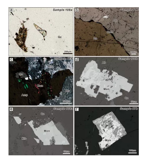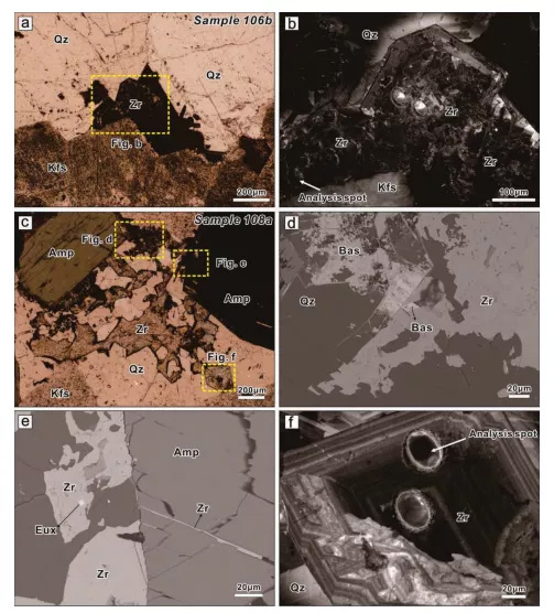 對于以上關鍵問題,學校地球科學與自然資源我校地球科學與資源學院教授,依托“成礦動力學”高等學校學科創新引智計劃、以我國內蒙古巴爾哲Zr-Nb-Be-REE礦床為研究對象,等微區結構和微束分析方法,在巖石探針片上開展鋯石和獨居石的礦物形貌學、地球化學和U-Pb年代學研究。